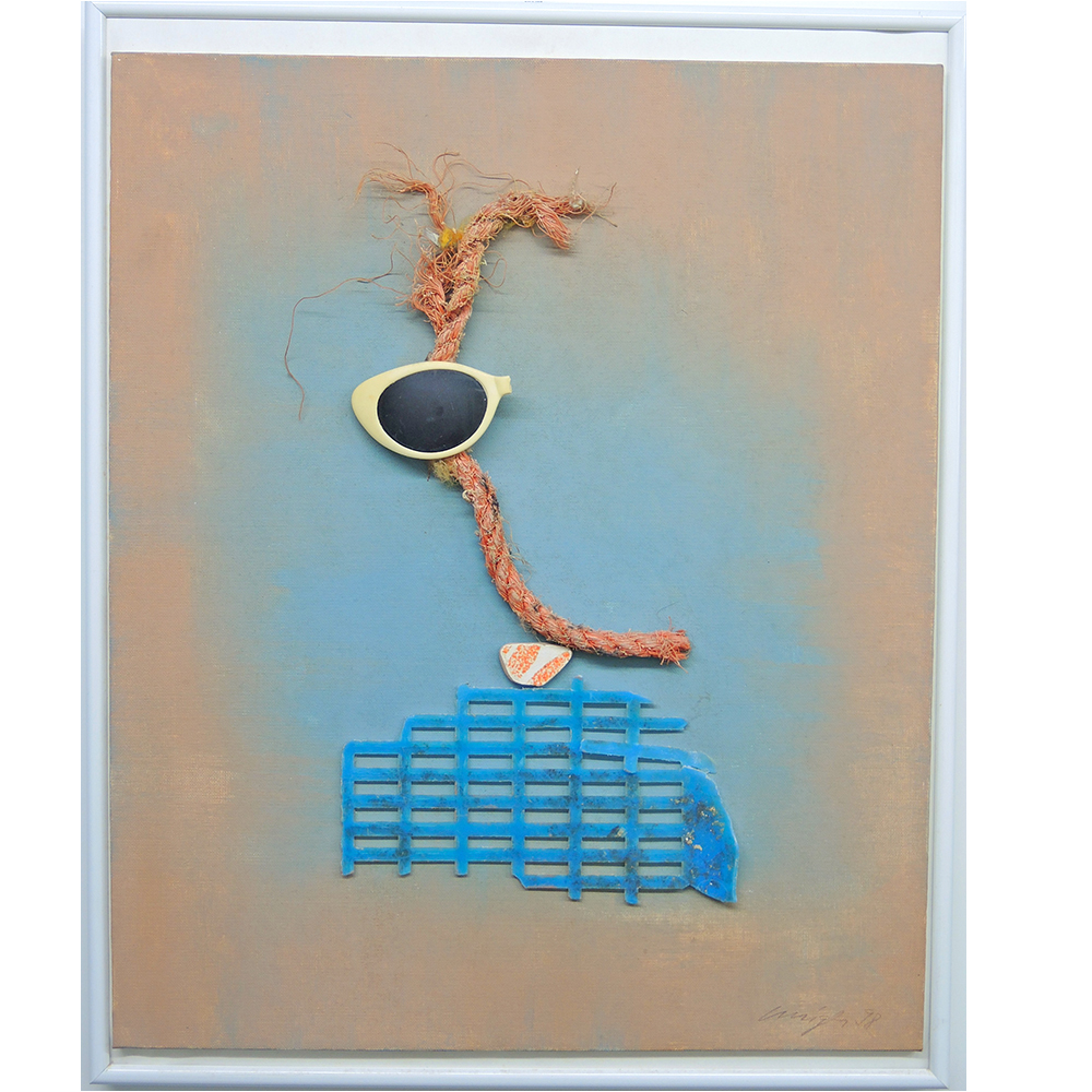 Mischtechnik/leinenbespannter Karton, ca. 46×38 cm, im weissen Metallrahmen ca. 50×40 cm