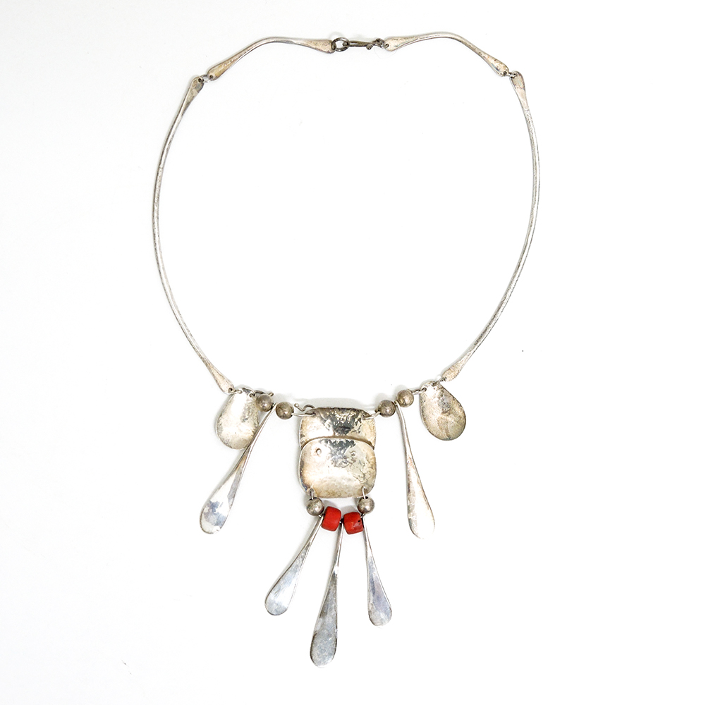 Seventies, GB, silver/coral, Length ca. 45.5 cm, width ca. 10.2 cm, weight ca. 41 g