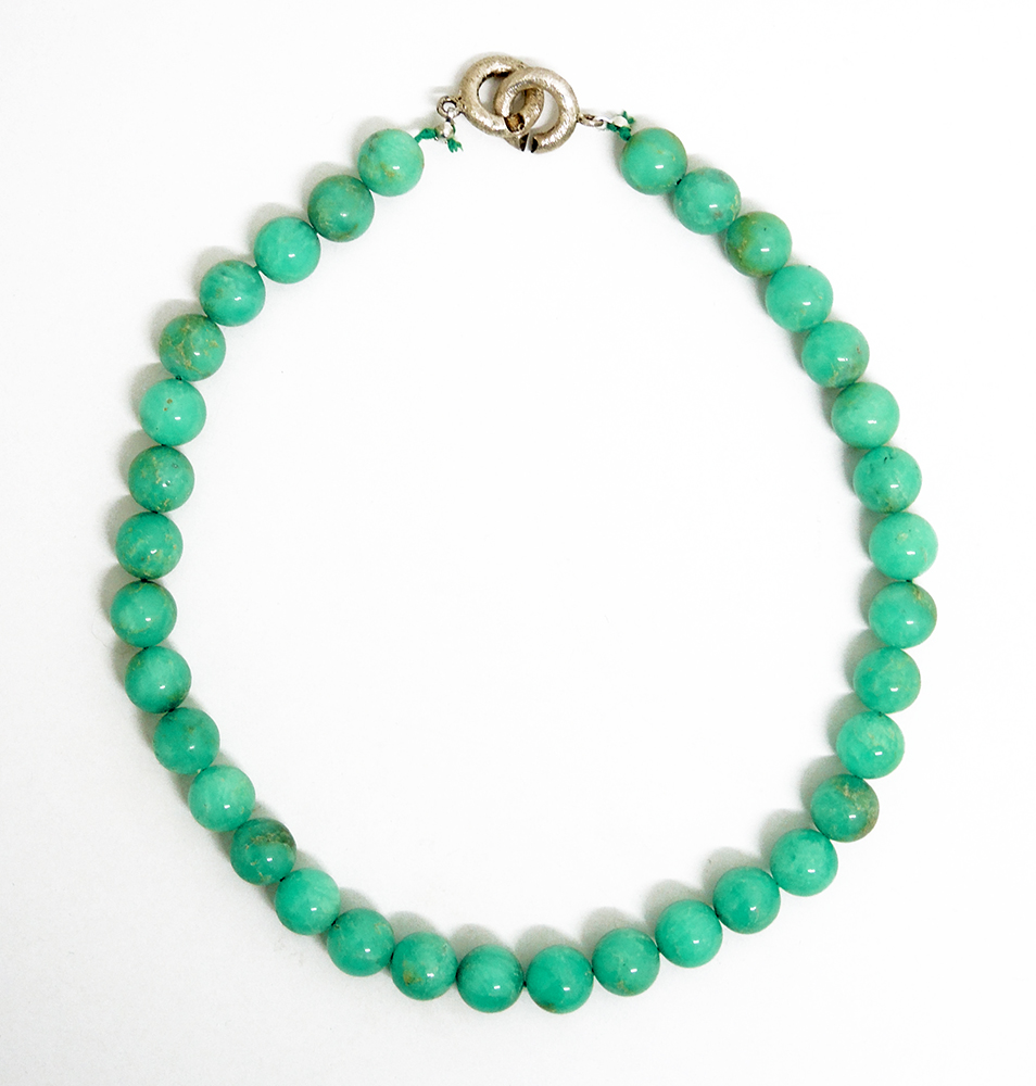 Chrysoprase necklace, silver clasp, length approx. 46 cm,