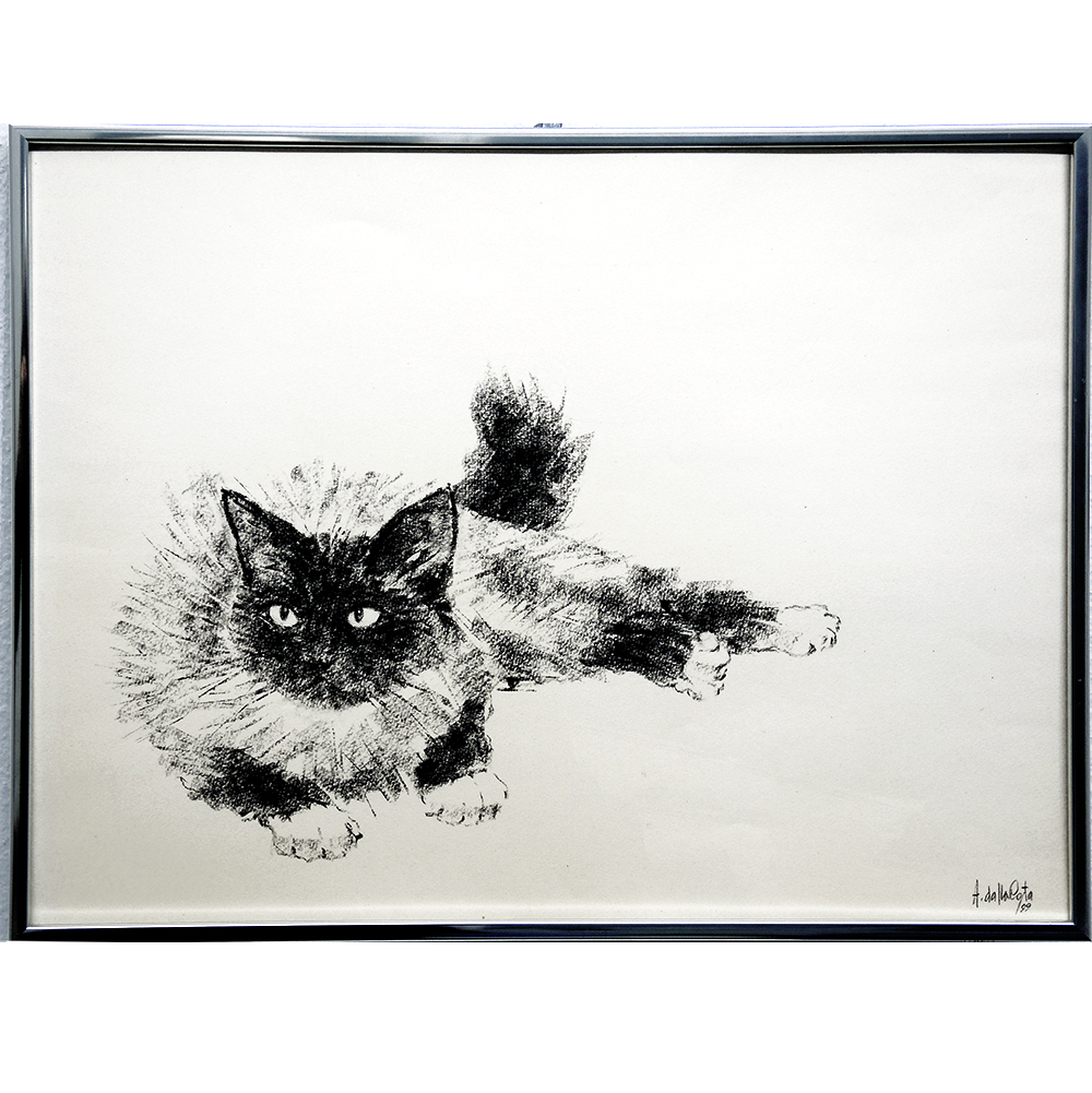 Cat, Oelpastell/Papier, ca. 30×40 cm, im Halbe Magnet-Rahmen, 30×40 cm