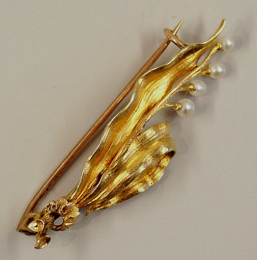 Edwardian, GB, 15 ct. gold, seedpearls length ca. 4.1 cm, width ca. 1.2 cm, weight ca. 3 g