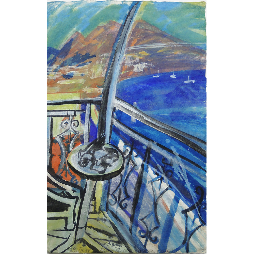 Eleni Beach, Mischtechnik auf Japanpapier, ca. 50×32 cm, im Säurefreien Passepartout und Halbe-Magnet-Rahmen, 80×60 cm