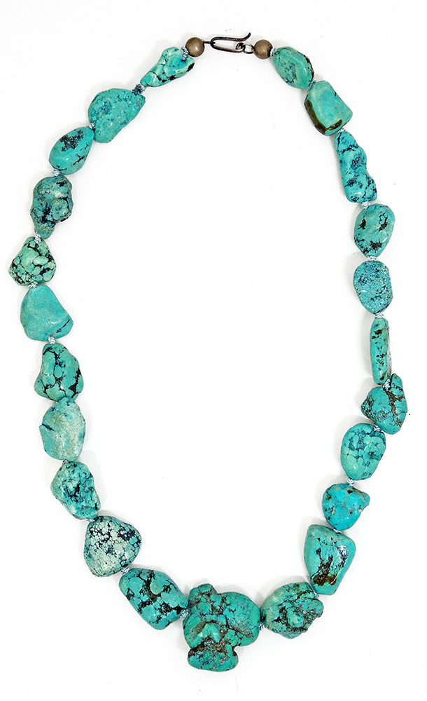 largest stone Ø ca. 3.1 cm Turquoise Mother Rock/silver lock length ca. 60 cm, weight ca. 126 g