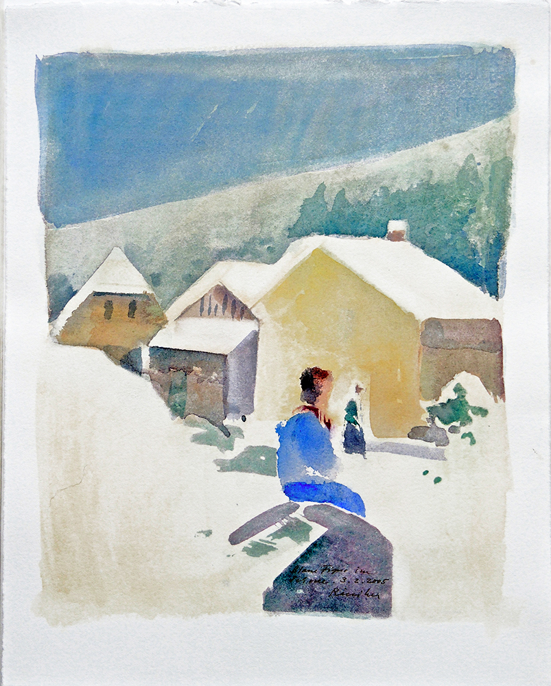 Aquarell, ca. 28,5×22,5 cm, im säurefreien Passepartout und Halbe Magnetrahmen 50×50 cm