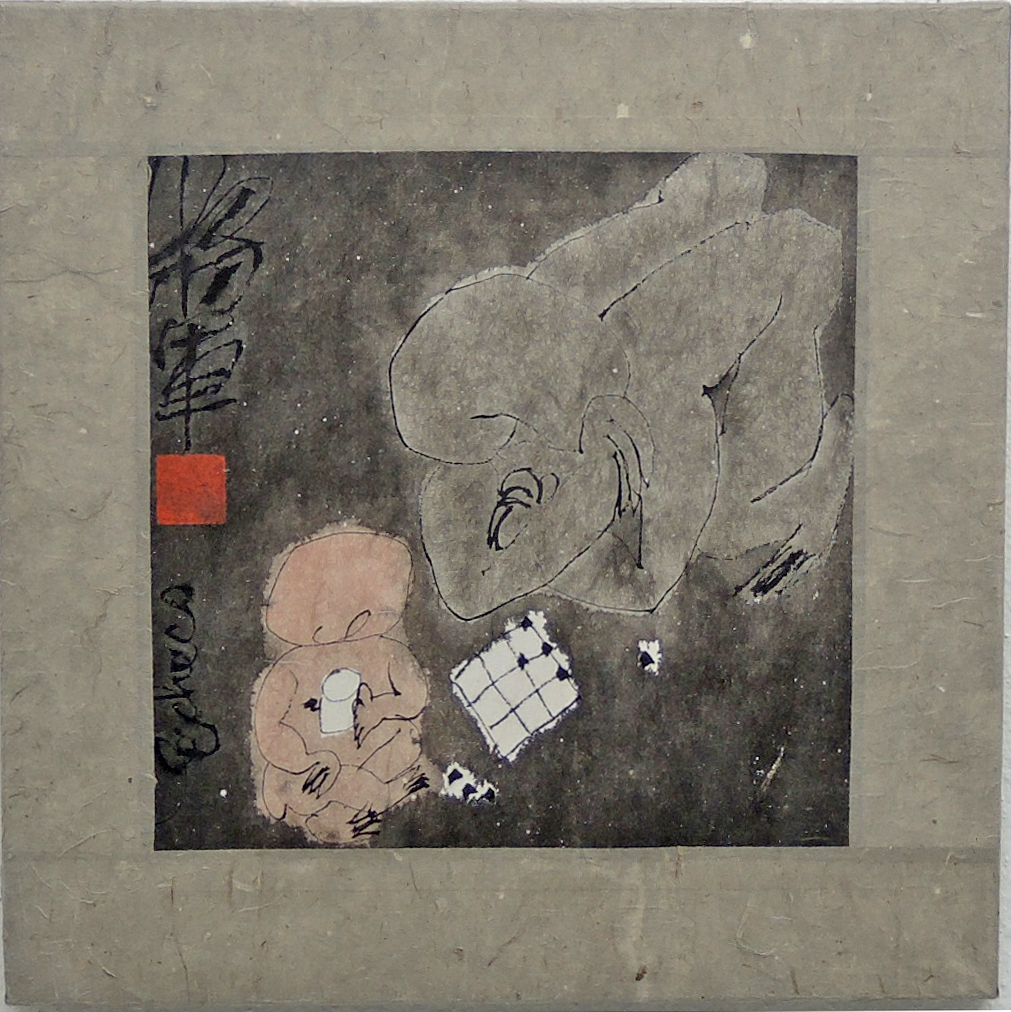 Tusche, aufgezogen auf Papier und Leinwand