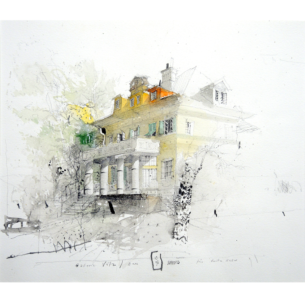Galerie Vita, Taubenstrasse 32, Bern 1985-2003, Aquarell/Bleistift 1998, ca. 26×30 cm, im säurefreien Passepartout und Halbe-Magnetrahmen 40×50 cm – das Aquarell ist natürlich atemberaubend und ich gebs ungern – aber da niemand weiss, was nach uns kommt, investiere ich damit in Tiere und Umwelt – die Zukunft…