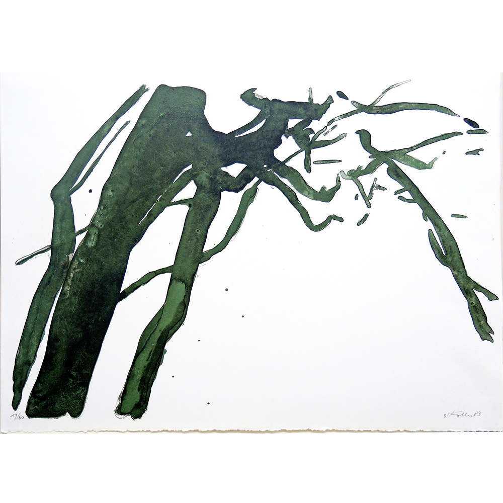 Grüne Bäume, Lithographie mit Aquarell 19/60, ca. 32×44 cm, im Halbe-Magnetrahmen mit Passepartout30x40 cm