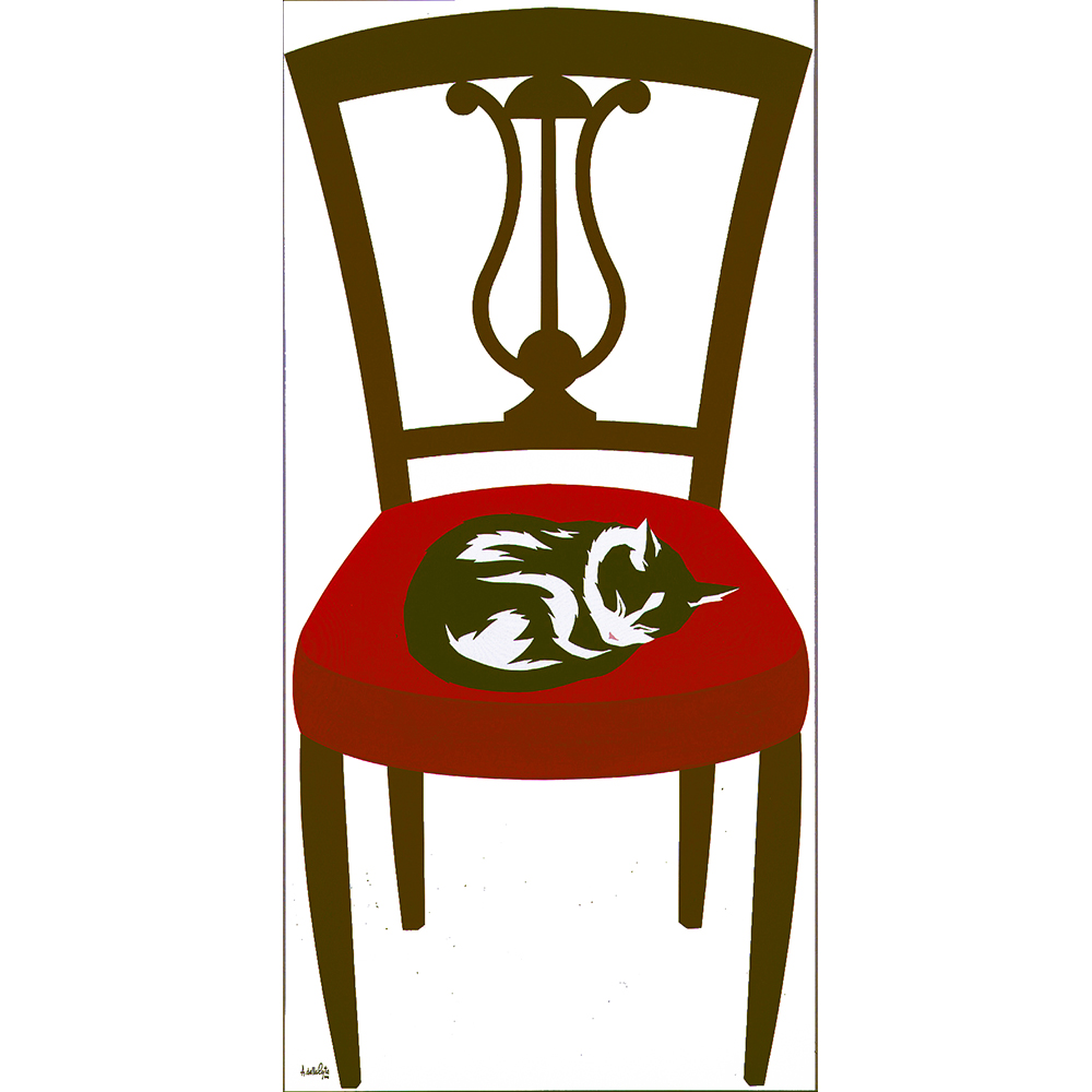 Il Cuscino Rosso – Das Rote Kissen, Acryl/Leinwand. 100×50 cm, im Original schwarzen Lack-Holzrahmen, hinter Glas