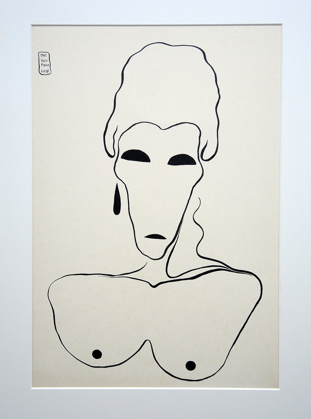 Tusche/schweres Cremefarbenes Papier, Papier ca. 50×35/Ausschnitt ca. 46.5×31 cm, Im säurefreien Passe-Partout und Halbe Magnetrahmen 50×65 cm CHF 950 (vormals 1’500)