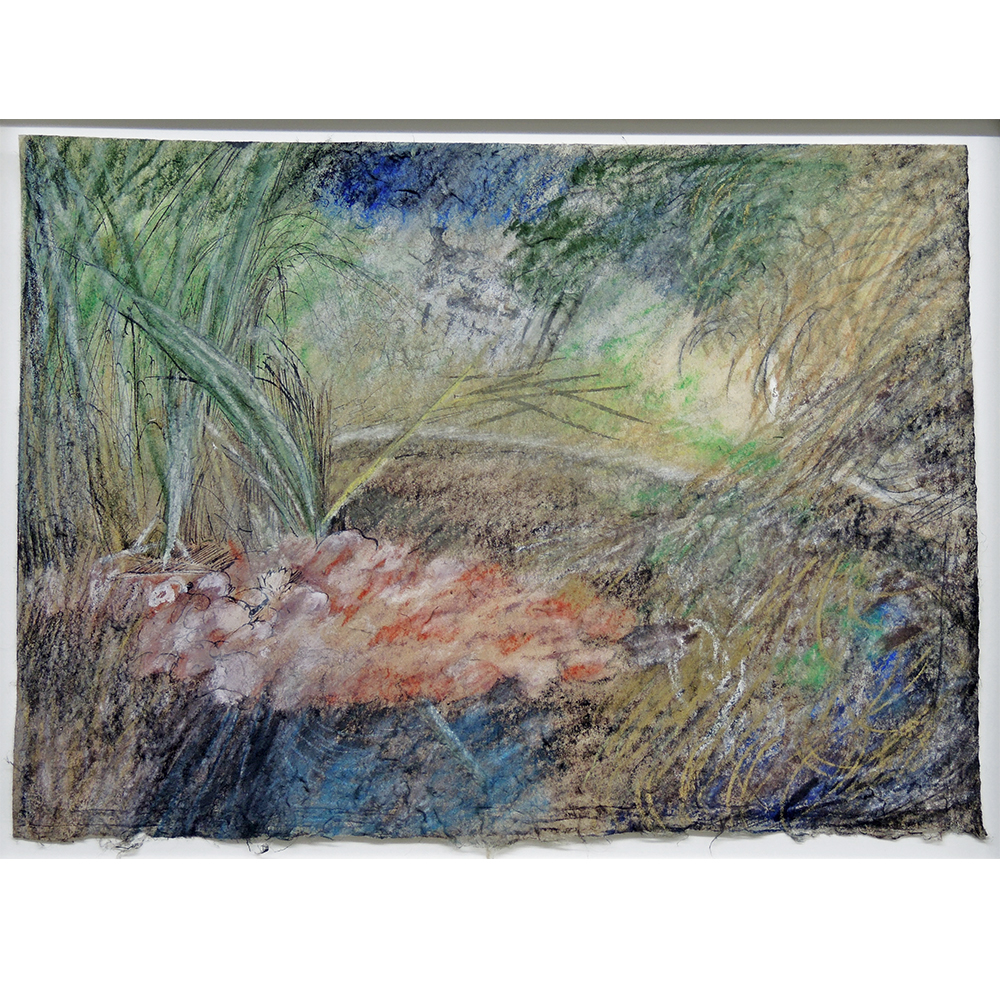 Mischtechnik auf handgeschöfpftem Papier, ca. 30×42 cm, im Halbe-Distanzrahmen auf Mass ca. 47×37 cm