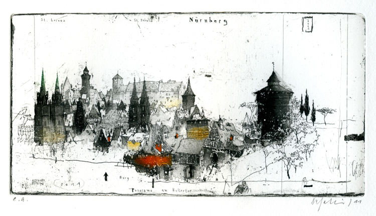 Radierung teilw. vom Kuenstler handkoloriert, e.a.