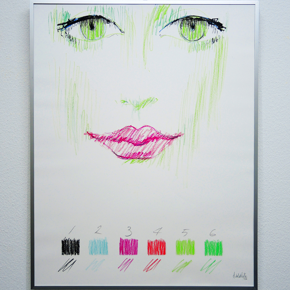 Goldie, Oelpastell/Papier, ca. 65×50 cm, im Halbe-Magnetrahmen, Chrom glänzend 65×50 cm