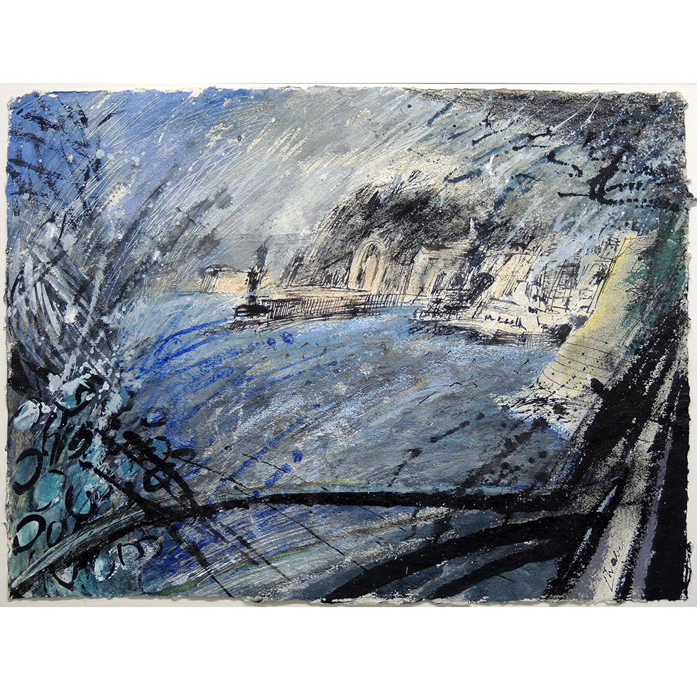 Nizza I, Mischtechnik auf handgeschöpftem Papier, ca. 45,5×61 cm, i.A. im Halbe-Magnetrahmen 65×50 cm
